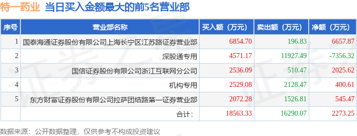 证券之星消息,沪深交易所2025年11月12日公布的交易公开信息显示,特一药业(002728)因日换手率达到20%的前5只证券登上龙虎榜。此次是近5个交易日内第1次上榜。