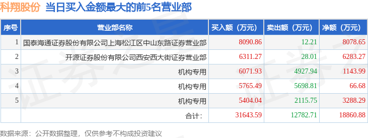 从龙虎榜公布的当日买卖数据来看,机构合计净买入4498.96万元。上海中山东路等知名游资榜上有名。(知名游资上海中山东路一般指国泰海通证券股份有限公司上海松江区中山东路证券营业部席位,根据市场资料整理,仅供参考)
