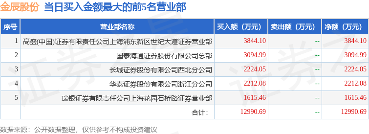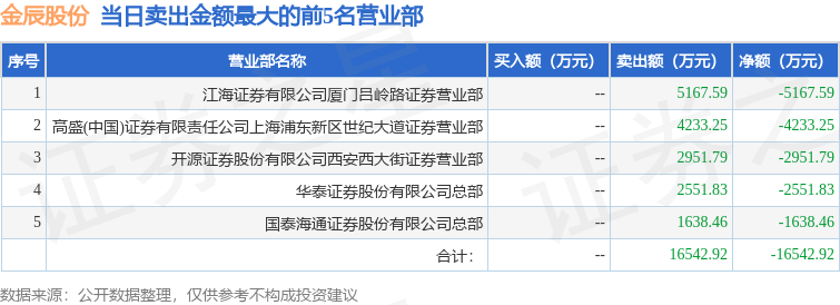 证券之星消息,沪深交易所2025年11月12日公布的交易公开信息显示,金辰股份(603396)因有价格涨跌幅限制的日价格振幅达到15%的前五只证券登上龙虎榜。此次是近5个交易日内第2次上榜。