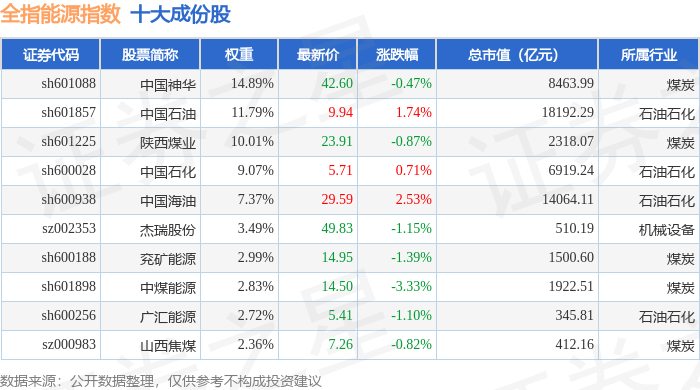 资金流向方面,全指能源(000986)指数成份股当日主力资金净流出合计3.73亿元,游资资金净流出合计609.41万元,散户资金净流入合计3.79亿元。成份股资金流向详情见下表: