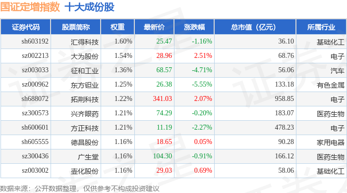 国证定增(399428)指数十大成份股详情如下: