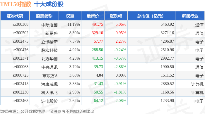 TMT50(399610)指数十大成份股详情如下: