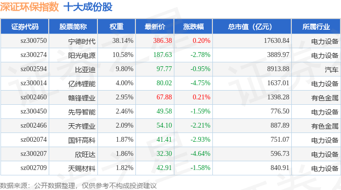 深证环保(399638)指数十大成份股详情如下: