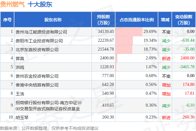根据贵州燃气2025年三季报公布的十大股东详情如下: