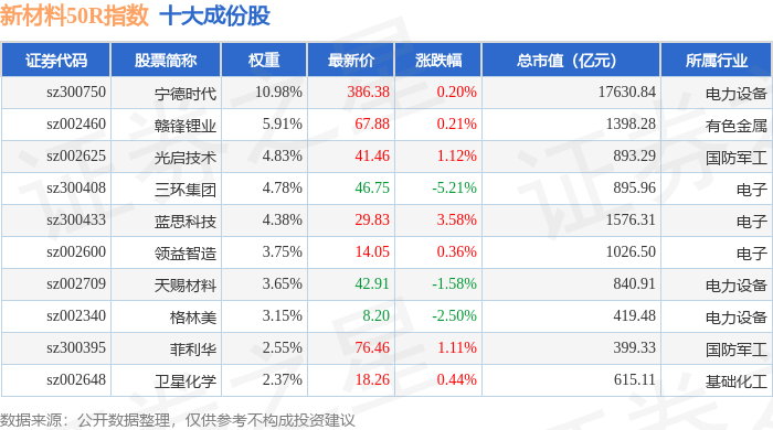 证券之星消息,11月12日,新材料50R(470042)指数报收于4114.18点,跌0.81%,成交768.28亿元,换手率3.17%。当日该指数成份股中,上涨的有15家,普利特以5.8%的涨幅领涨,下跌的有35家,三角防务以7.09%的跌幅领跌。