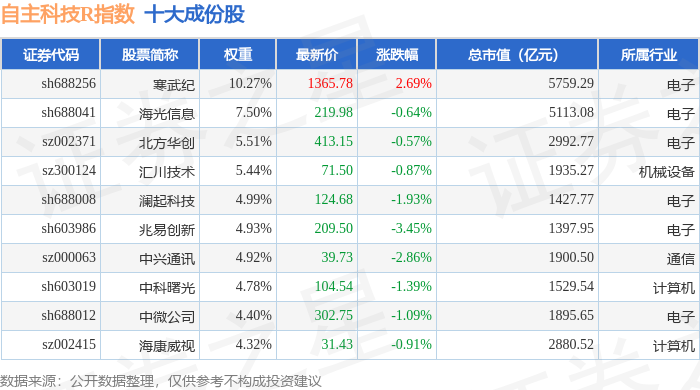 证券之星消息,11月12日,自主科技R(480033)指数报收于9970.89点,跌0.67%,成交663.67亿元,换手率1.45%。当日该指数成份股中,上涨的有14家,三生国健以6.6%的涨幅领涨,下跌的有36家,虹软科技以8.83%的跌幅领跌。