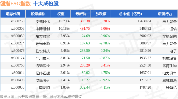 资金流向方面,创指ESG(970028)指数成份股当日主力资金净流出合计51.2亿元,游资资金净流入合计6.84亿元,散户资金净流入合计44.35亿元。成份股资金流向详情见下表: