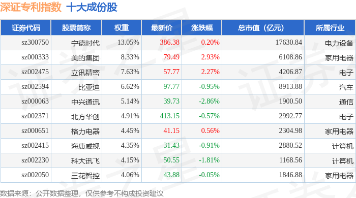 资金流向方面,深证专利(970067)指数成份股当日主力资金净流出合计11.27亿元,游资资金净流出合计2.15亿元,散户资金净流入合计13.42亿元。成份股资金流向详情见下表: