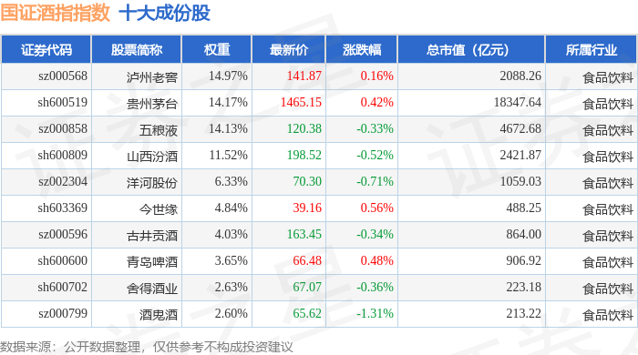 国证酒指(980049)指数十大成份股详情如下: