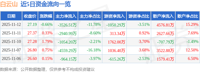 证券之星消息,截至2025年11月12日收盘,白云山(600332)报收于27.19元,下跌0.66%,换手率0.78%,成交量10.96万手,成交额2.99亿元。