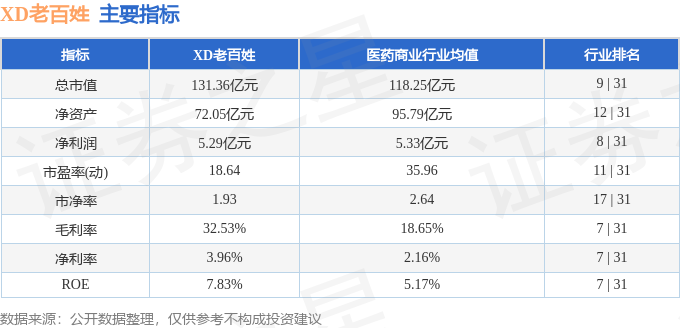 该股主要指标及行业内排名如下: