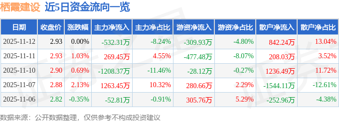 证券之星消息,截至2025年11月12日收盘,栖霞建设(600533)报收于2.93元,上涨0.0%,换手率2.1%,成交量22.0万手,成交额6457.74万元。