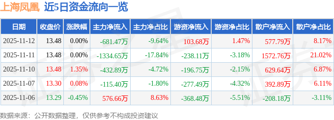 11月12日的资金流向数据方面,主力资金净流出681.47万元,占总成交额9.64%,游资资金净流入103.68万元,占总成交额1.47%,散户资金净流入577.79万元,占总成交额8.17%。