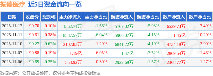 证券之星消息,截至2025年11月12日收盘,振德医疗(603301)报收于90.7元,上涨0.1%,换手率3.61%,成交量9.62万手,成交额8.72亿元。