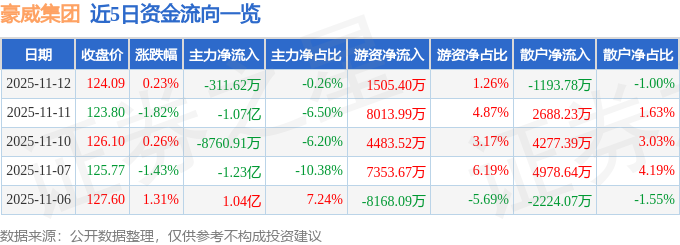 11月12日的资金流向数据方面,主力资金净流出311.62万元,占总成交额0.26%,游资资金净流入1505.4万元,占总成交额1.26%,散户资金净流出1193.78万元,占总成交额1.0%。