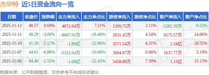 证券之星消息,截至2025年11月12日收盘,杰华特(688141)报收于40.57元,上涨0.69%,换手率5.23%,成交量13.98万手,成交额5.73亿元。