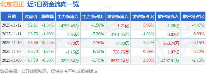 11月12日的资金流向数据方面,主力资金净流出4299.48万元,占总成交额1.5%,游资资金净流入1.71亿元,占总成交额5.96%,散户资金净流出1.28亿元,占总成交额4.47%。