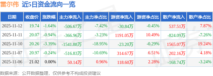 证券之星消息,截至2025年11月12日收盘,雷尔伟(301016)报收于19.74元,下跌1.64%,换手率1.66%,成交量3.45万手,成交额6826.8万元。