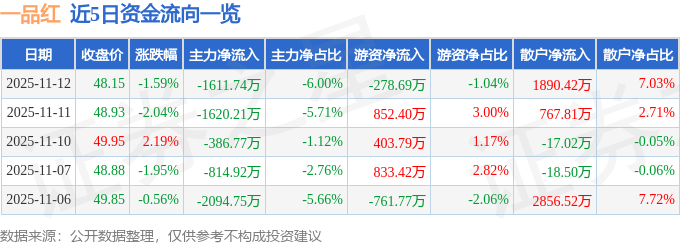 证券之星消息,截至2025年11月12日收盘,一品红(300723)报收于48.15元,下跌1.59%,换手率1.33%,成交量5.57万手,成交额2.69亿元。