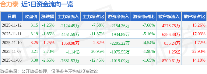 证券之星消息,截至2025年11月12日收盘,合力泰(002217)报收于3.15元,下跌1.25%,换手率1.56%,成交量88.81万手,成交额2.8亿元。