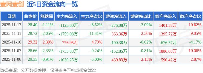 11月12日的资金流向数据方面,主力资金净流出1125.5万元,占总成交额8.52%,游资资金净流出276.08万元,占总成交额2.09%,散户资金净流入1401.58万元,占总成交额10.62%。