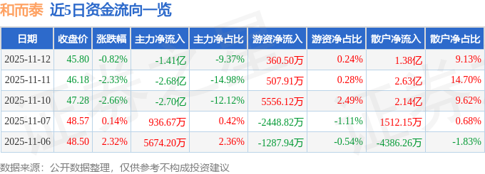 11月12日的资金流向数据方面,主力资金净流出1.41亿元,占总成交额9.37%,游资资金净流入360.5万元,占总成交额0.24%,散户资金净流入1.38亿元,占总成交额9.13%。