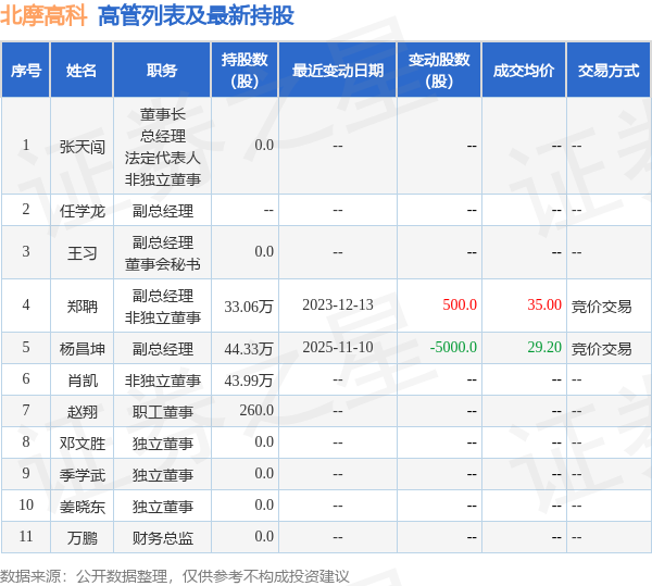 北摩高科近半年内的董监高及核心技术人员增减持详情如下: