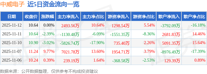 证券之星消息,截至2025年11月12日收盘,中威电子(300270)报收于10.64元,上涨0.0%,换手率8.38%,成交量21.86万手,成交额2.34亿元。