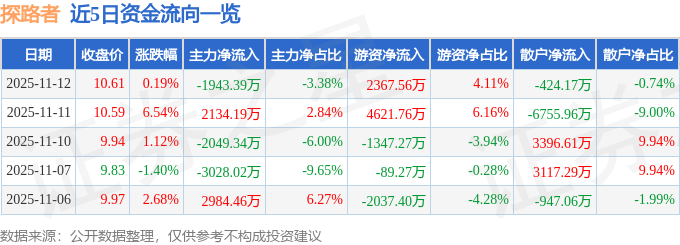 证券之星消息,截至2025年11月12日收盘,探路者(300005)报收于10.61元,上涨0.19%,换手率6.2%,成交量54.78万手,成交额5.76亿元。