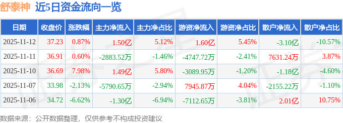 11月12日的资金流向数据方面,主力资金净流入1.5亿元,占总成交额5.12%,游资资金净流入1.6亿元,占总成交额5.45%,散户资金净流出3.1亿元,占总成交额10.57%。