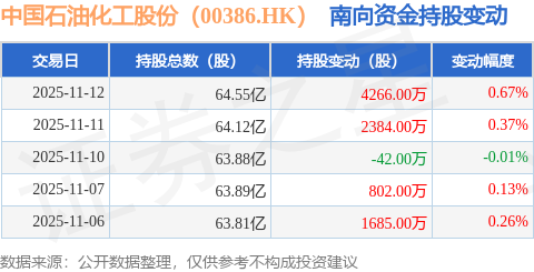 证券之星消息,11月12日南向资金增持4266.0万股中国石油化工股份(00386.HK)。近5个交易日中,获南向资金增持的有4天,累计净增持9095.0万股。近20个交易日中,获南向资金减持的有10天,累计净减持1500.49万股。截至目前,南向资金持有中国石油化工股份(00386.HK)64.55亿股,占公司已发行普通股的26.95%。
