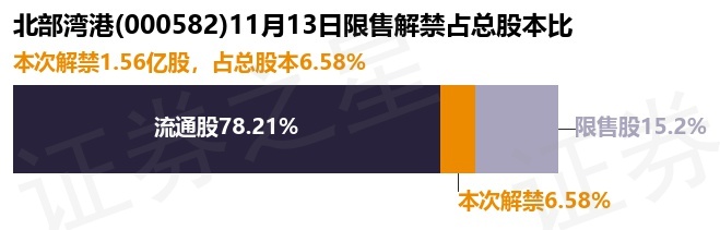 证券之星消息,根据市场公开信息整理,北部湾港(000582)于11月13日将有1.56亿股限售股份解禁,为公司定向增发机构配售股份,占公司总股本6.58%。(本次数据根据历史公告整理得出,实际情况以上市公司最新公告为准)最近一年内,该股累计解禁3.5亿股,占总股本的14.76%。本次解禁后,公司还有3.6亿股限售股份,占总股本15.2%。具体如下图所示:
