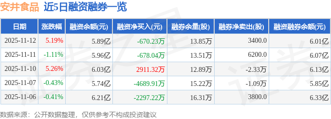 安井食品融资融券信息显示,融资方面,当日融资买入1.11亿元,融资偿还1.17亿元,融资净偿还670.23万元。融券方面,融券卖出4400.0股,融券偿还1000.0股,融券余量13.85万股,融券余额1124.91万元。融资融券余额6.01亿元。
