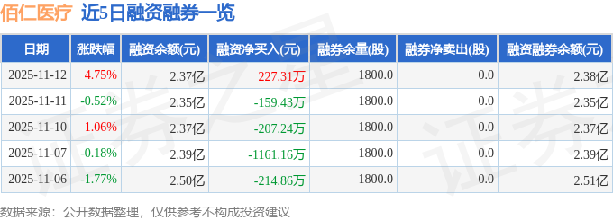 佰仁医疗融资融券信息显示,融资方面,当日融资买入1205.77万元,融资偿还978.46万元,融资净买入227.31万元。融券方面,融券卖出0.0股,融券偿还0.0股,融券余量1800.0股,融券余额20.52万元。融资融券余额2.38亿元。