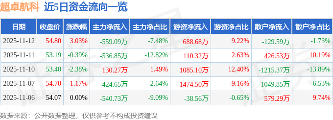 11月12日的资金流向数据方面,主力资金净流出559.09万元,占总成交额7.48%,游资资金净流入688.68万元,占总成交额9.22%,散户资金净流出129.59万元,占总成交额1.73%。