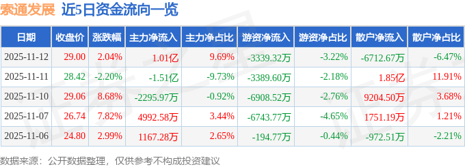 证券之星消息,截至2025年11月12日收盘,索通发展(603612)报收于29.0元,上涨2.04%,换手率7.3%,成交量36.37万手,成交额10.37亿元。