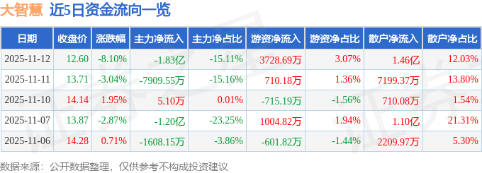11月12日的资金流向数据方面,主力资金净流出1.83亿元,占总成交额15.11%,游资资金净流入3728.69万元,占总成交额3.07%,散户资金净流入1.46亿元,占总成交额12.03%。
