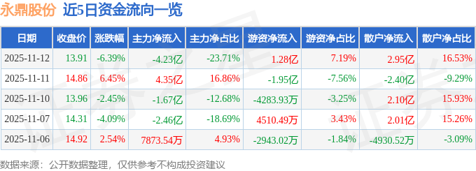 11月12日的资金流向数据方面,主力资金净流出4.23亿元,占总成交额23.71%,游资资金净流入1.28亿元,占总成交额7.19%,散户资金净流入2.95亿元,占总成交额16.53%。