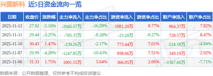 证券之星消息,截至2025年11月12日收盘,兴图新科(688081)报收于27.92元,下跌5.16%,换手率4.19%,成交量4.32万手,成交额1.23亿元。