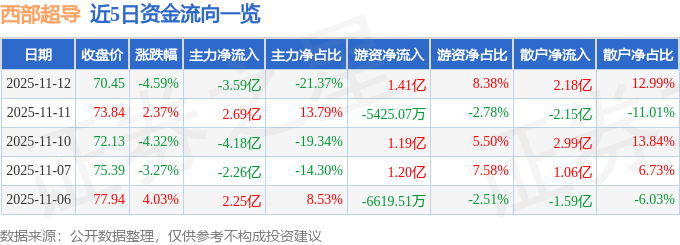 11月12日的资金流向数据方面,主力资金净流出3.59亿元,占总成交额21.37%,游资资金净流入1.41亿元,占总成交额8.38%,散户资金净流入2.18亿元,占总成交额12.99%。