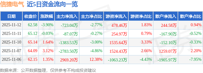 证券之星消息,截至2025年11月12日收盘,信捷电气(603416)报收于62.58元,下跌3.9%,换手率2.99%,成交量4.17万手,成交额2.61亿元。