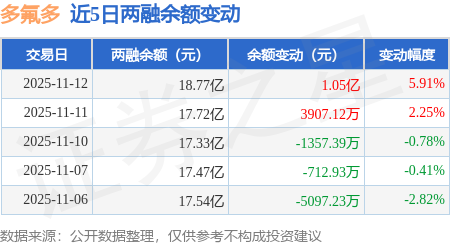 证券之星消息,11月12日,多氟多(002407)融资买入7.77亿元,融资偿还6.73亿元,融资净买入1.04亿元,融资余额18.71亿元,当日融资净买入排名第29,近20个交易日中有11个交易日出现融资净买入。