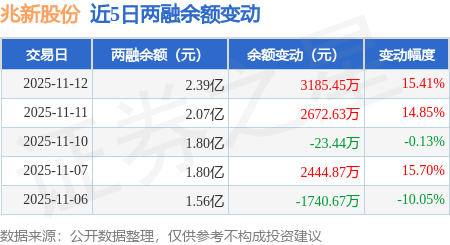 证券之星消息,11月12日,兆新股份(002256)融资买入7234.25万元,融资偿还4048.8万元,融资净买入3185.45万元,融资余额2.39亿元,近20个交易日中有11个交易日出现融资净买入。