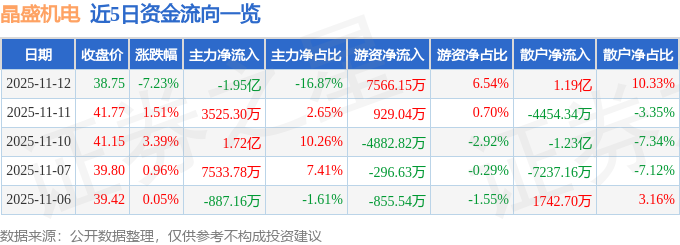 11月12日的资金流向数据方面,主力资金净流出1.95亿元,占总成交额16.87%,游资资金净流入7566.15万元,占总成交额6.54%,散户资金净流入1.19亿元,占总成交额10.33%。