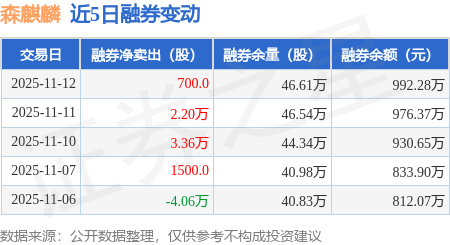 证券之星消息,11月12日,森麒麟(002984)融资买入6093.57万元,融资偿还5148.94万元,融资净买入944.64万元,融资余额6.37亿元,近20个交易日中有11个交易日出现融资净买入。