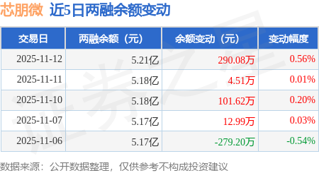 证券之星消息,11月12日,芯朋微(688508)融资买入1886.55万元,融资偿还1604.08万元,融资净买入282.48万元,融资余额5.2亿元。