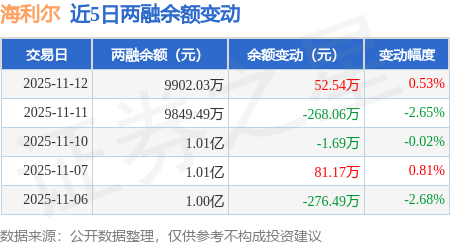 证券之星消息,11月12日,海利尔(603639)融资买入398.3万元,融资偿还345.89万元,融资净买入52.4万元,融资余额9901.89万元。