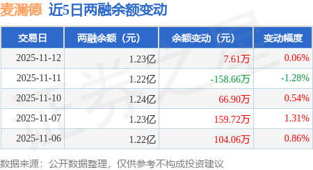 证券之星消息,11月12日,麦澜德(688273)融资买入585.37万元,融资偿还577.77万元,融资净买入7.61万元,融资余额1.23亿元,近20个交易日中有11个交易日出现融资净买入。