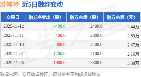 证券之星消息,11月12日,苏博特(603916)融资买入434.44万元,融资偿还438.59万元,融资净卖出4.15万元,融资余额1.14亿元。