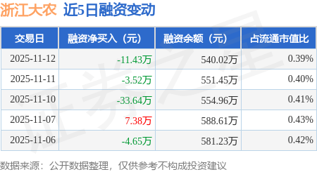 证券之星消息,11月12日,浙江大农(920855)融资买入57.6万元,融资偿还69.03万元,融资净卖出11.43万元,融资余额540.02万元。